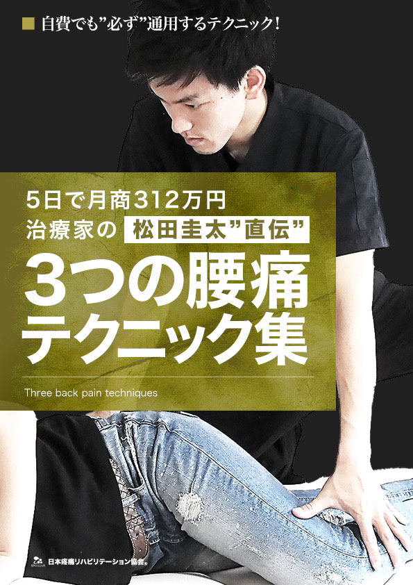 これを使うことで、自費でも成功するのはもちろん、病院でもずば抜けて治療技術がうまくなって、「あの先生から治療してほしい」という患者が出てくるのは間違いないと思う。今回は、病院でくすぶっている君にこれをプレゼントしようと思う。このテクニック集を解説してくれるのは、5日で312万円の治療院を作り上げた”松田圭太”がこのテクニックを、君が分かるまでみっちり解説とテクニックを教えてくれるから安心してくれ。